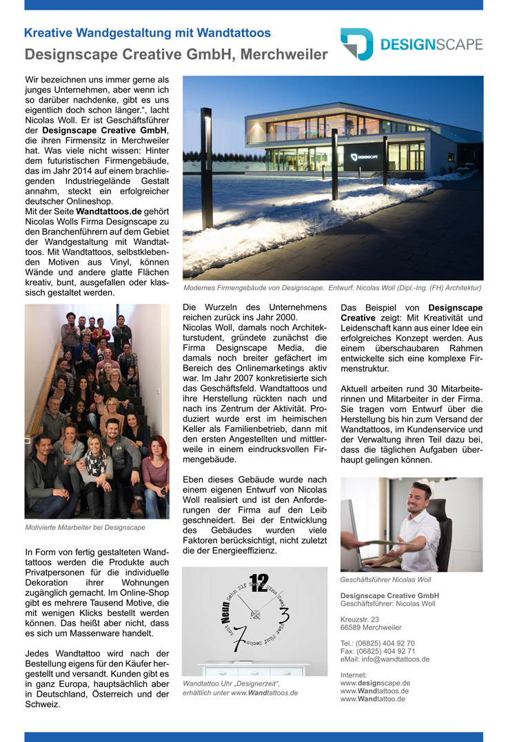 Im Juni 2017 berichtete WFG Aktuell – Informationen der Wirtschaftsförderungsgesellschaft im Landkreis Neunkirchen über unsere Firma Designscape Creative GmbH.